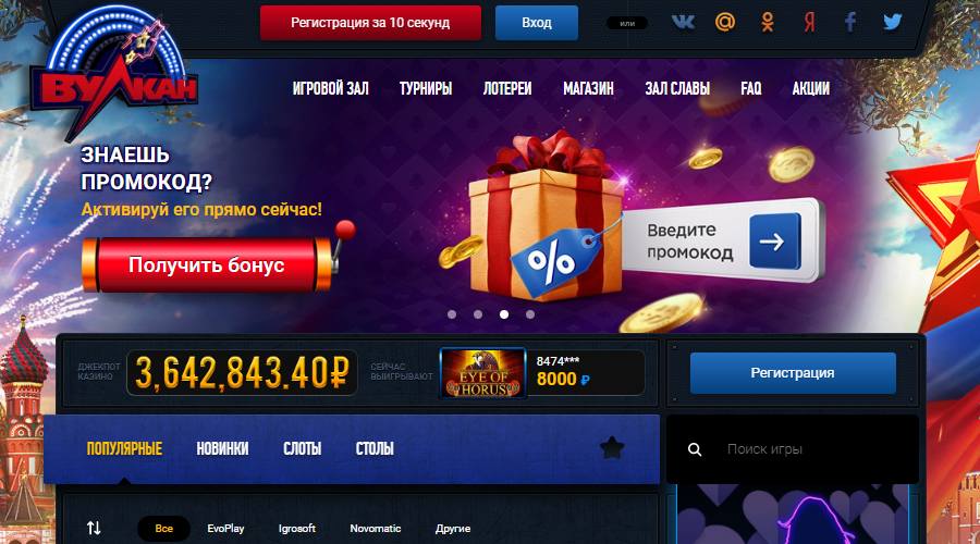 🎁Казино Вулкан – бездеп 500 рублей, фриспины, кешбек и бонус код